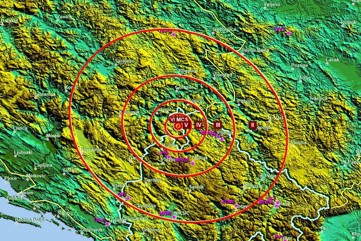 The earthquake in Bosnia and Herzegovina was felt in Montenegro
